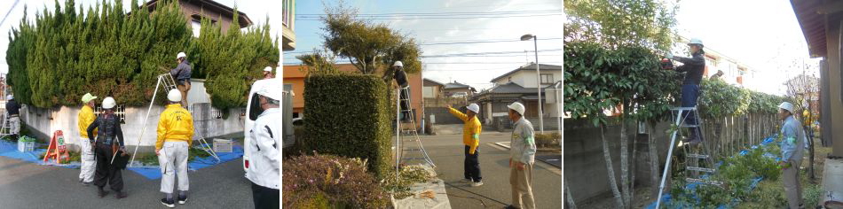 安全委員、三嶋理事長、事務局長、担当職員10名にて、糸島市内の就業場所8か所(剪定作業・草刈作業)を